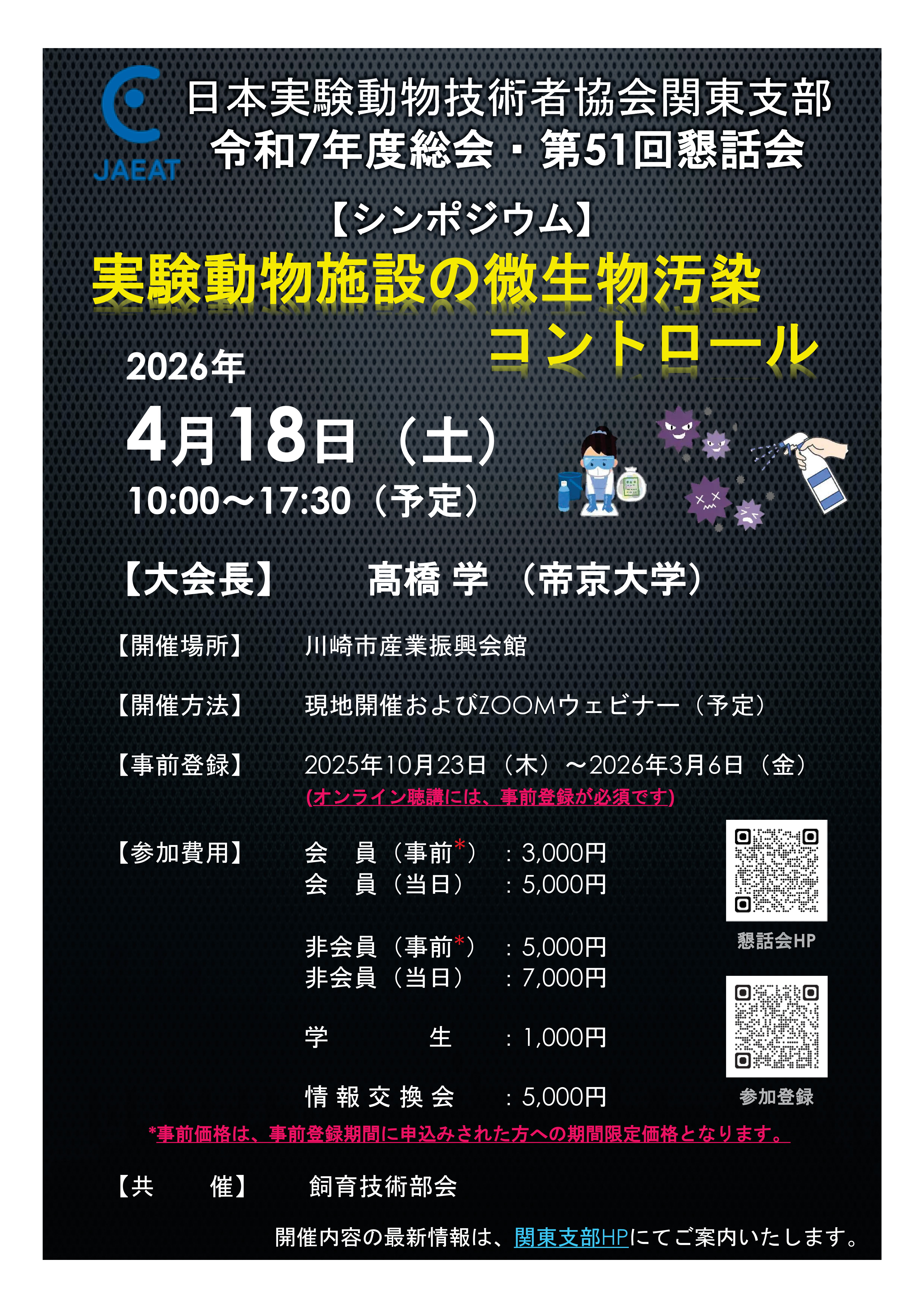 令和7年度 微生物統御 第450回本部共催実技講習会 開催のご案内